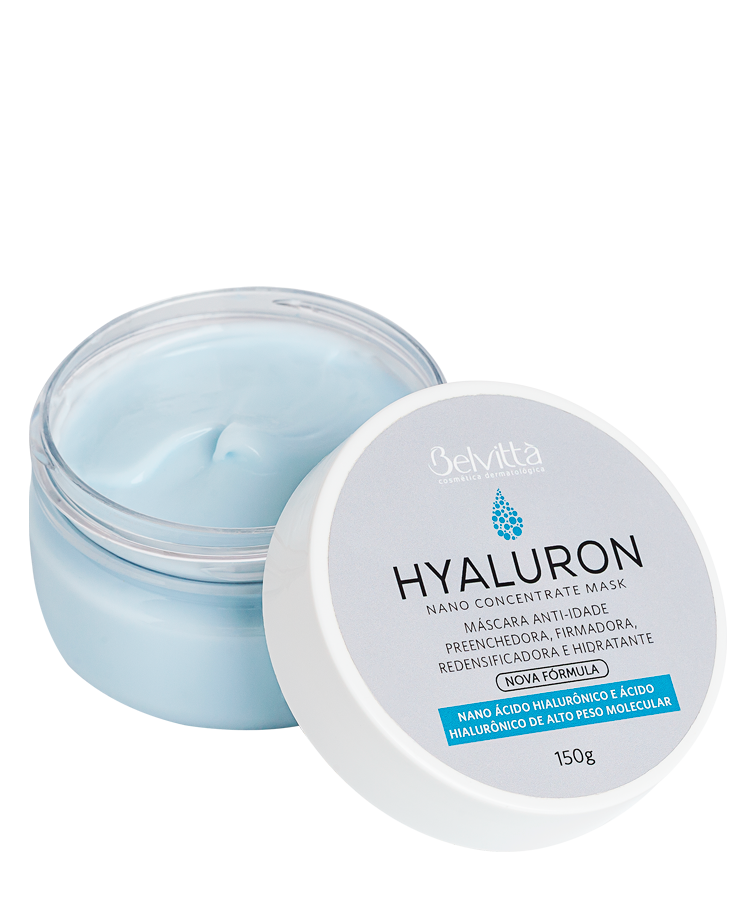 Máscara essencial para procedimentos profissionais de rejuvenescimento facial que combina ácido hialurônico de alto peso molecular e ácido hialurônico nanoencapsulado, promovendo efeito rejuvenescedor em múltiplas camadas da pele. Enquanto o ácido hialurônico com maior tamanho de moléculas retém a água na superfície, promovendo maciez, a forma nanoencapsula penetra nas camadas mais profundas, promovendo o preenchimento de rugas e linhas de expressão, melhorando a firmeza e recuperando densidade e volume da pele.
